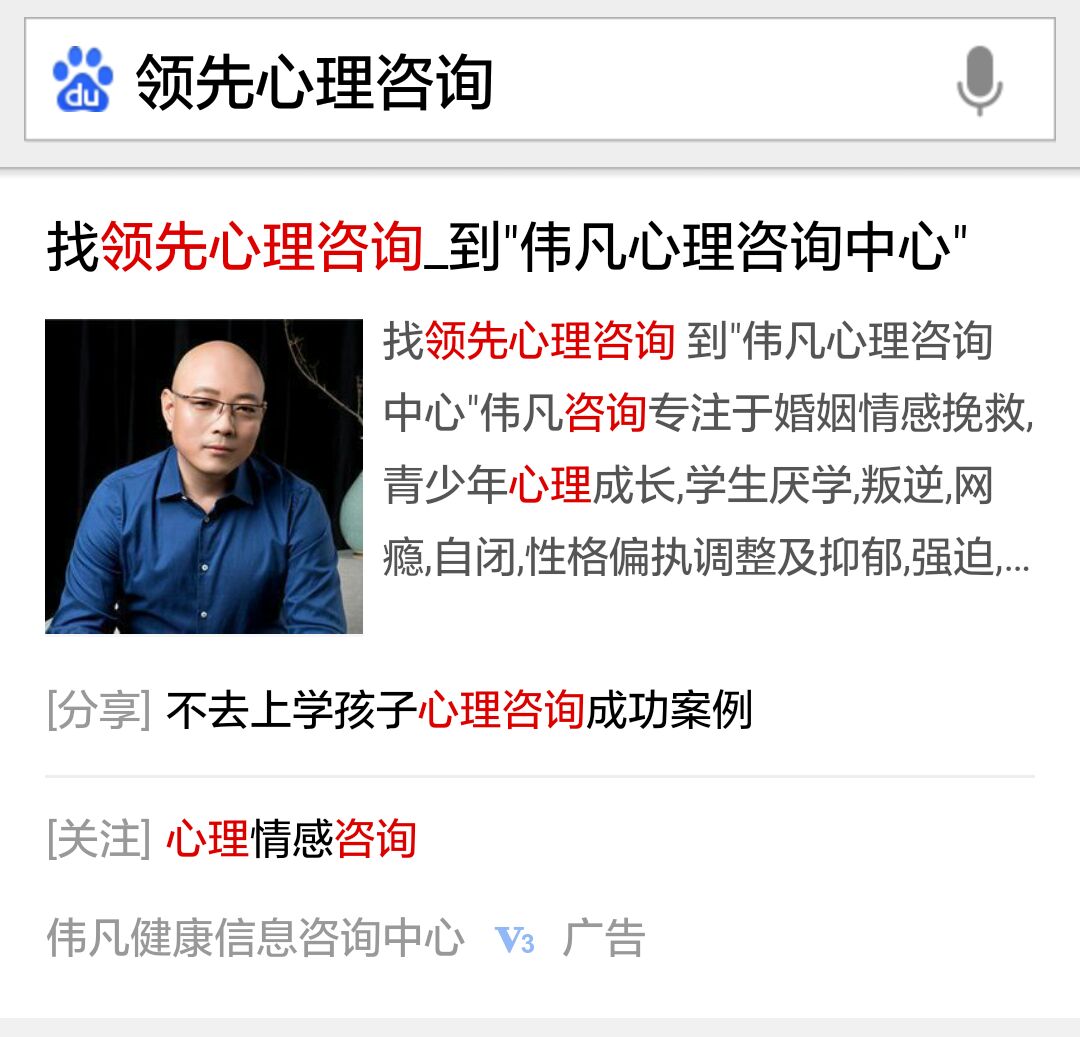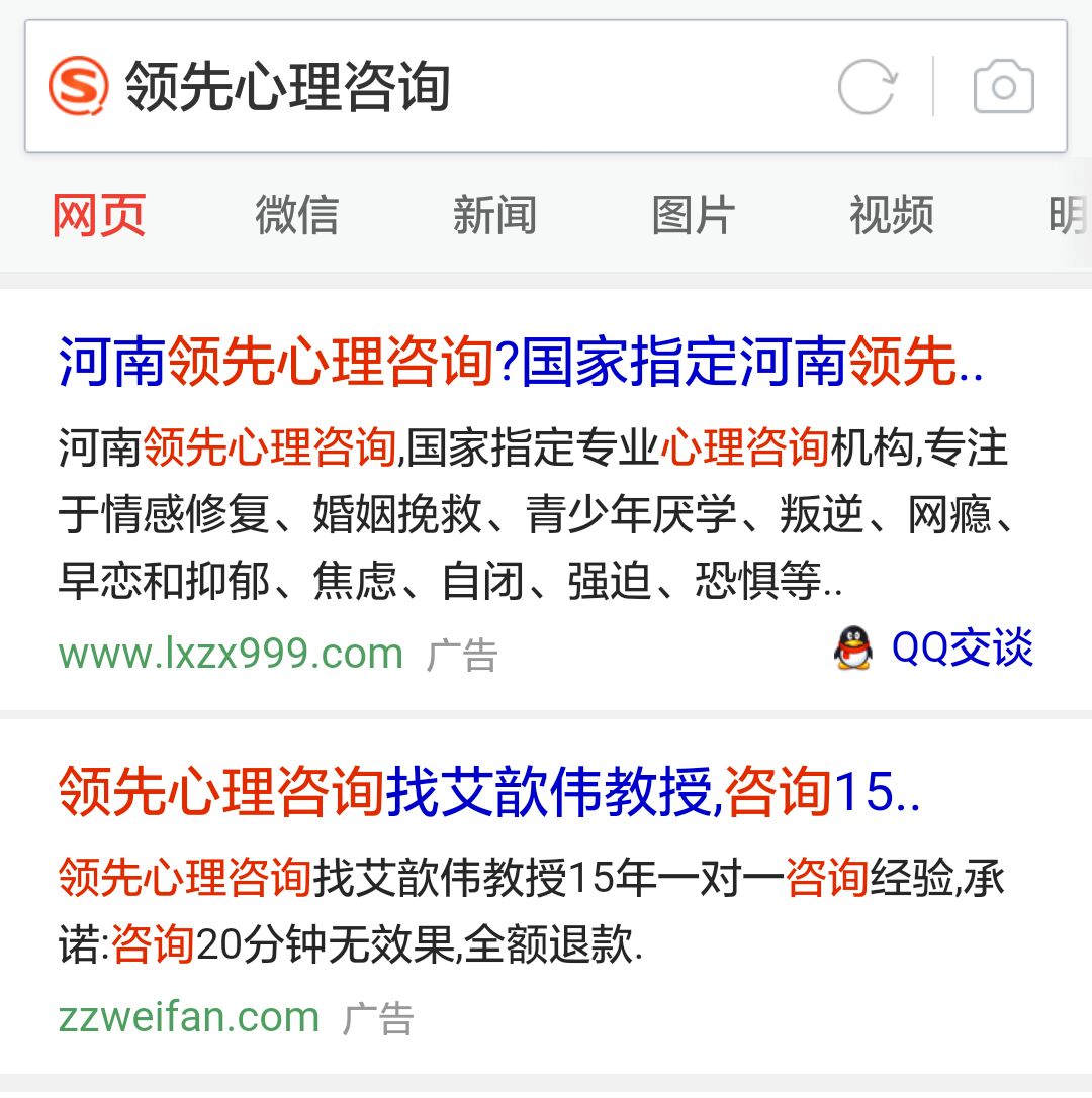 本公司已经注意到郑州伟凡心理咨询中心经常盗用“领先心理咨询”的名称在百度和搜狗进行推广宣传,再次希望其不要再采取类似的行为吸引顾客,如再有类似行为出现,我公司将会采取法律手段进行维权,特此声明!